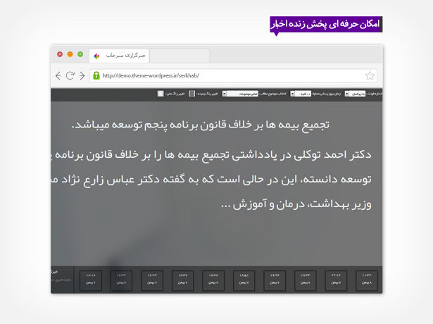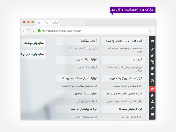 قالب خبری وردپرس سرخاب در ردیف قالب های حرفه ای خبری دسته بندی میشود و برای خبرگزاری های حرفه ای ، سایت های خبری ، مجله های خبری ، مصارف انتخاباتی و … کاربرد دارد. این قالب یک قالب به تمام عیار ایرانی میباشد.